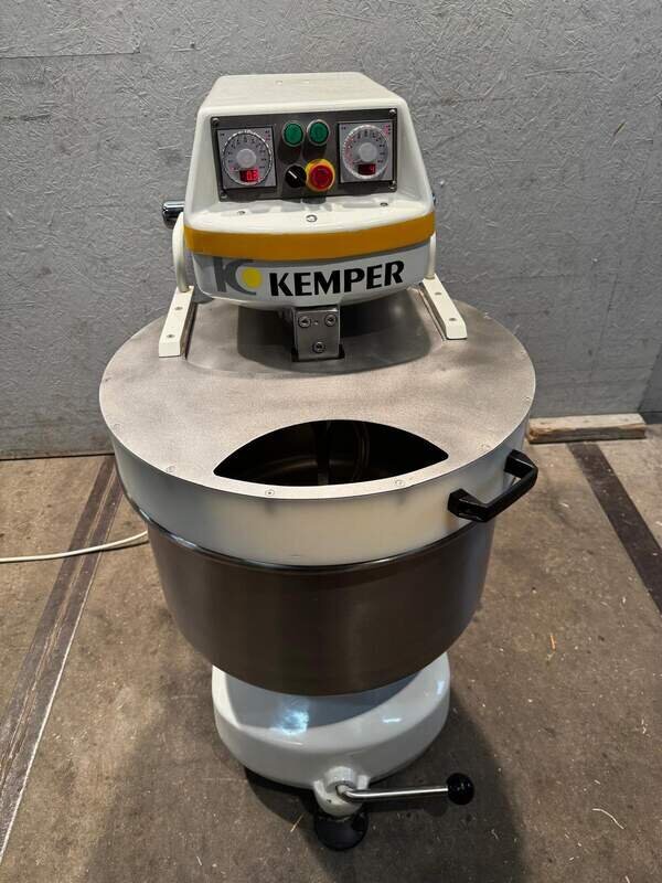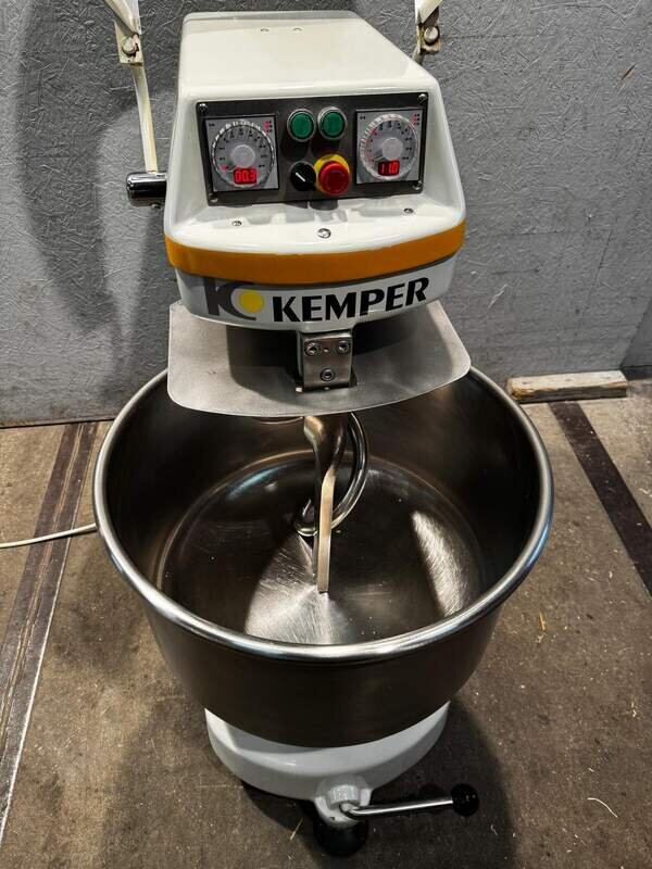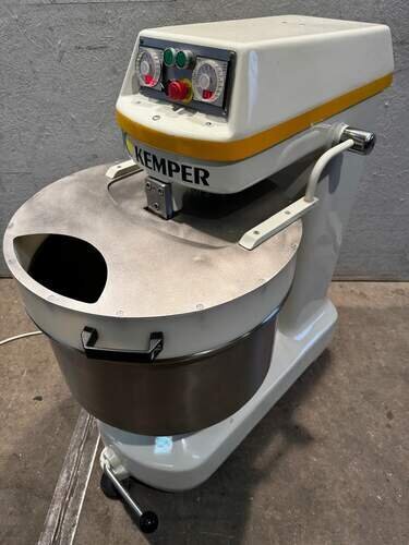 gebrauchter Kemper Spiralkneter SPL 35, für ca. 45kg Teig / 30kg Meh, wurde vor ca. 4 Jahren überholt, voll funktionsfähig, läuft ruhig. Mit Edelstahlspirale, Edelstahlkessel, ist fahrbar, hat 2 Zeituhren, 2 Geschwindigkeiten und Staubabdeckung.