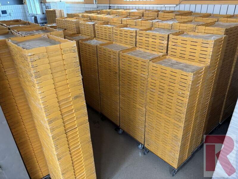 Approx. 2,000 units available in bakery condition; the trays were in use until the end of March and should be washed before reuse. Approx. 160 trays fit onto a Euro pallet; partial sales possible. Without towels or similar items; the trays were used with a paper liner.