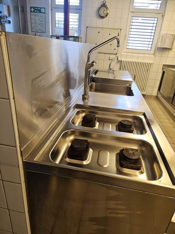 700/850 mm Höhe, mit Gasherd, Elektrobraisiergerät, Elektrogriddle Pfanne, Säulen.-und Mischbatterie, günstig abzugeben