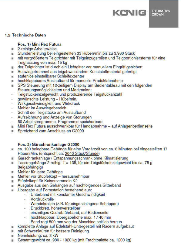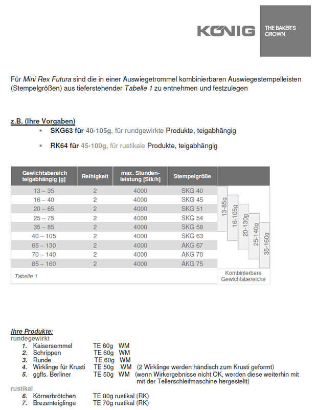 - mit vergrößertem Teigtrichter, mit Teigeinzugsrollen und Teigportioniersterne für eine Teigfassung von max. 15 kg
