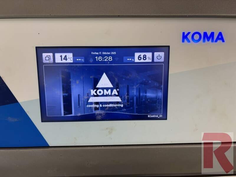Koma RDV deep-freeze storage cell for approx. 30 trolleys in 60/80 cm format, year of manufacture 2021, for optimum storage of unpackaged goods without loss of quality. Internal dimensions approx. 420 x 390 cm, approx. 12 cm thick insulation, workmanship at the highest level. With the latest Koma control system incl. touch display for optimum processes and reproducible results. Refrigerant: R 449-A / approx. 11 kW electrical connected load and approx. 12.4 kW cooling capacity