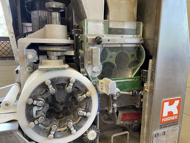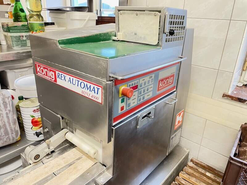 Konig Mini Rex 4000 Kopfmaschine: Gewichtsbereich 25-118 gr Baujahr 1999 Gärschrank mit 145 belegbaren Gehängen, maximales Teigstückeinzelgewicht ca. 100g max. Stundenleistung bei Gärschrankbetrieb: 2000-2500 Stück, stufenlos verstellbar Leistung ohne Gärschrankbetrieb,