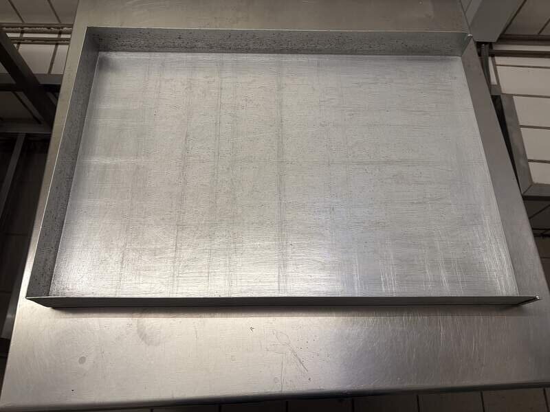 verkaufe gebrauchte Kuchenbleche/Backbleche im Format 60×40 cm, Randhöhe ca. 5 cm. Insgesamt sind ca. 80 Stück vorhanden. Normale Gebrauchsspuren aus dem Betrieb, funktionsfähig, keine verbogenen “Totalschäden” (siehe Fotos).