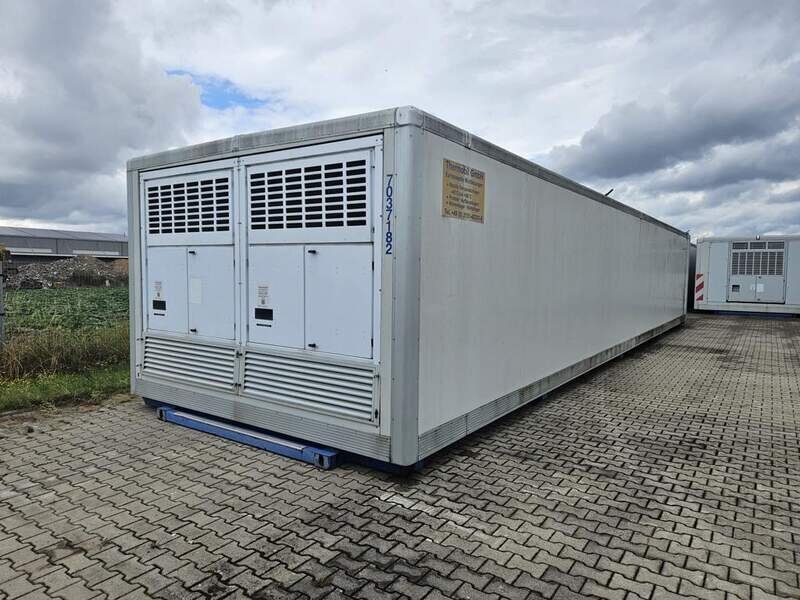 Zahlungsbedingungen: Die SuperBox gibt es in sechs verschiedenen Größen mit einer Lagerkapazität von 12 bis 44 Euro-Paletten Thermobil SuperBoxen - Vorteile auf einen Blick: • Bodenisolierung 150mm - fugenfrei und eben • Bodenbelastbarkeit 1500kg/m² - Anti-Rutsch-Beschichtung • Wandisolierung 100mm • Innenraum besonders leicht zu reinigen • besonders energieeffiziente Boden-, Wand- und Deckenisolierung • mehr als 50% Stromkostenersparnis, gegenüber eines Containers • umlaufender Rammschutz • doppelflügelige Kühlraumtür mit Innenentriegelung • keine Türverriegelungsstangen unterhalb des Kühlraumbodens • Innenbeleuchtung und batteriegepufferte Notbeleuchtung • Streifenvorhang • Panikschalter mit Alarm bei eingeschlossenem Mitarbeiter • min./max. Temperaturalarm optisch und akustisch • batteriegepufferter Temperaturdatenlogger • Stromanschluss pro Aggregat: 400V / 32A Thermobil Kaufvorteile auf einen Blick: • hochwertige Produkte von Profis • fairer Preis • sechs Monate Gewährleistung • alle SuperBoxen entsprechen den aktuellen Richtlinien der Berufsgenossenschaft • alle vorschriftsmäßigen Inspektionen/Wartungen während der Mietzeit • Wartung und technischer Funktionscheck vor Auslieferung • Aufstellung + Inbetriebnahme durch unsere Techniker bei Ihnen vor Ort • professionelle Transportorganisation Thermobil Verkaufsbedingungen: • Zwischenverkauf vorbehalten • Zahlung sofort nach Rechnungsstellung – Gesamtsumme vor Auslieferung • Einzelpreise ab Depot, netto zuzüglich Mehrwertsteuer in gesetzlicher Höhe