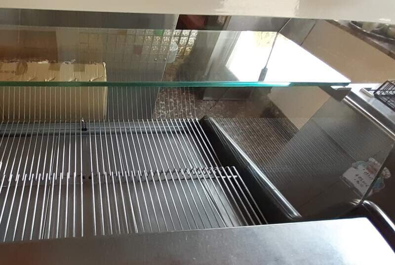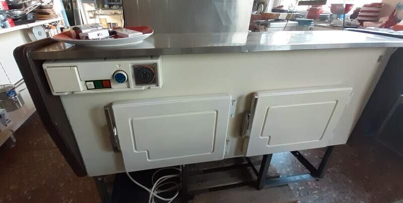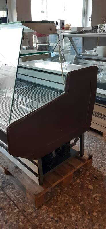 Verkaufen aus dem gastronomischen Gebrauchtwarenhandel eine funktionstüchtige Verkaufstheke mit Glasaufbau und 2 Vorratsfächern auf der Bedienerseite.