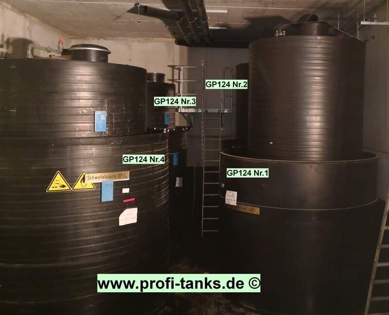 Kunststofftank gebraucht 15.000 L, PE-Hostalen GM5010T2-Tank, Flachbodentank, doppelwandig, lichtundurchlässig. Chemietank für Natronlauge, EisenIIIChlorid, EisenIISulfat, Salzsäure, Essigsäure, Salpetersäure, Ameisensäure usw. Lagertank. profi-tanks
