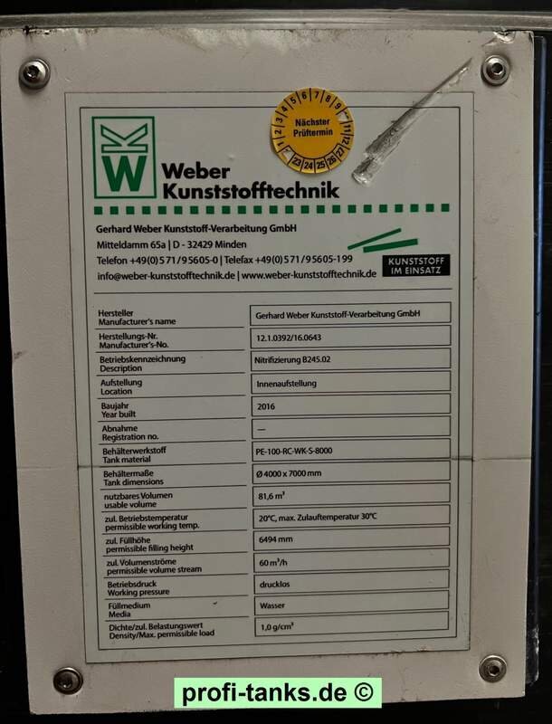 P332 - gebrauchter ca. 81,6 m³ / 81.600 Liter PE100-Tank