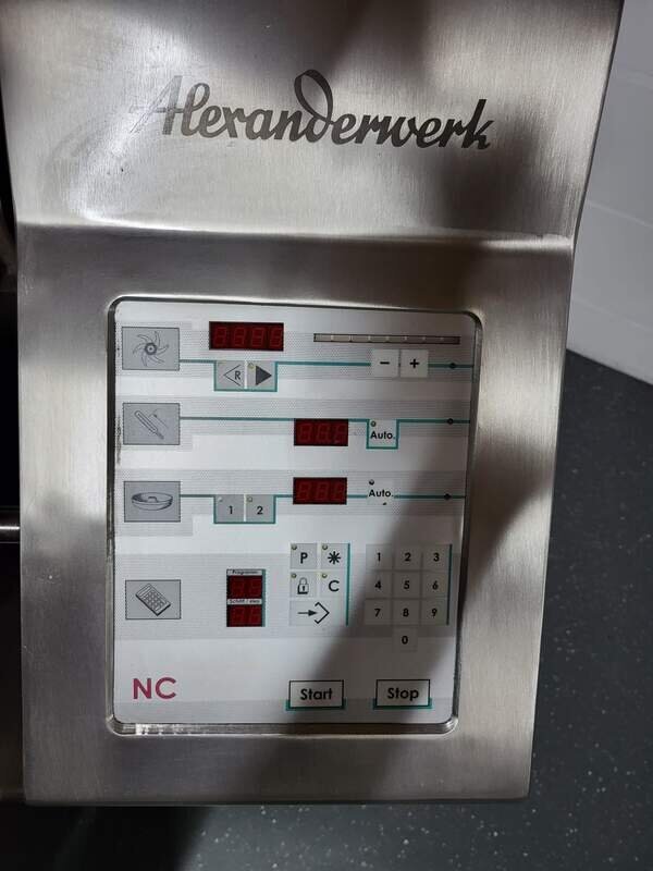 Angeboten wird ein Kutter Fa. Alexanderwerk Nirocut NCM 65 Komplett V2A Die Maschine ist voll funktionsfähig und sofort einsatzbereit. Anschluss 400v. 15/20Kw. Messewelle 2 - Gang 1800/3600 U/min. Schüssel V2A 2 - Gang 9/18 U/min. 2 x Mischgang Vor und Rückwärts. 4-er Messerkopf. Stecker fertig.Weiteres auf anfrage.