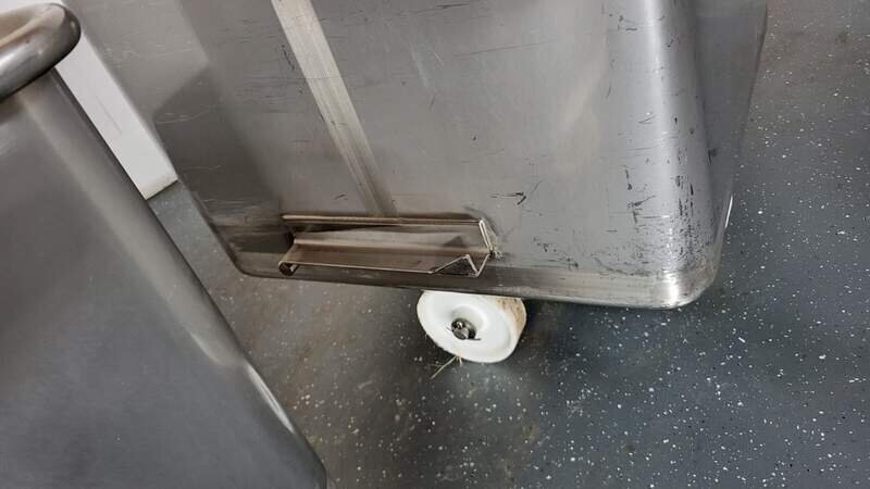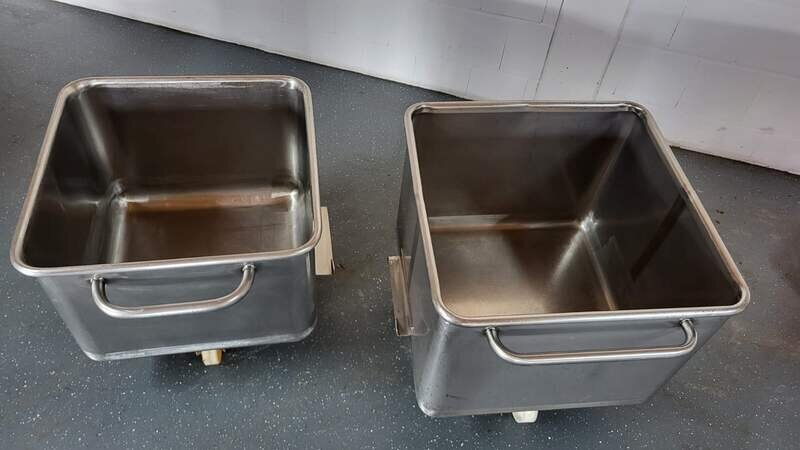 Angeboten wird ein gebrauchter Normwagen Kutterwagen aus Edelstahl auf 4 Rädern und Aufnahmevorrichtung für Hub-und Kipp arme.Größe ca. 65cmx65cmx70cm Inhalt 200L Gebraucht, es sind mehrere auf Lager.