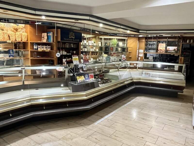 Wir bieten eine Bäckerei- / Konditoreiladeneinrichtung mit schöner Kuchentheke.