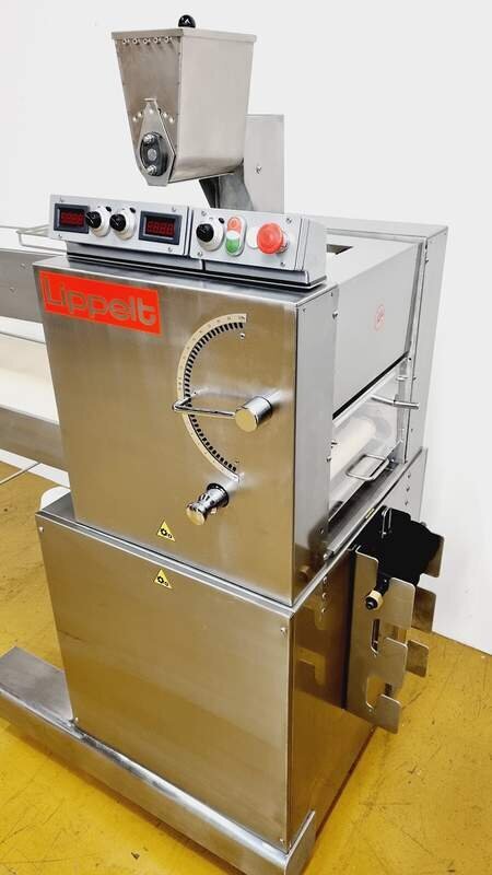 Kopfmaschine für eckige Spezialbrötchen Teigteiler Modell: Mini-Rustica sehr guter Zustand inkl. Längsschneidewalze Mehler für Einlauf LED Steuerung Edelstahlausführung und Gewährleistung + Service Paket