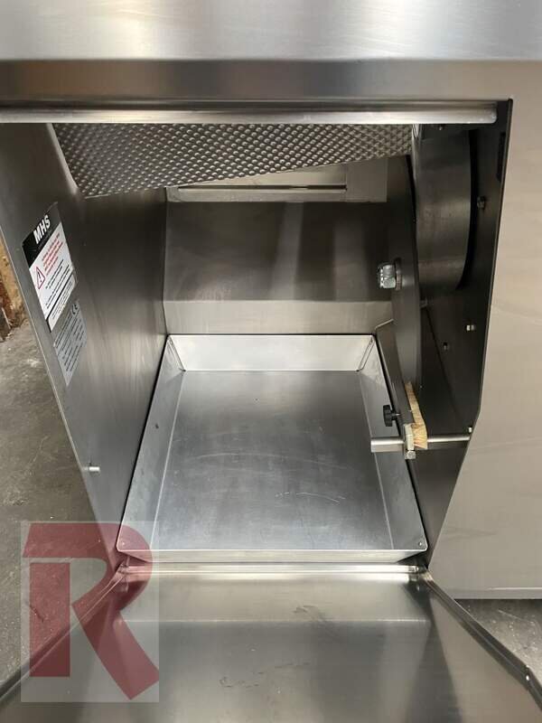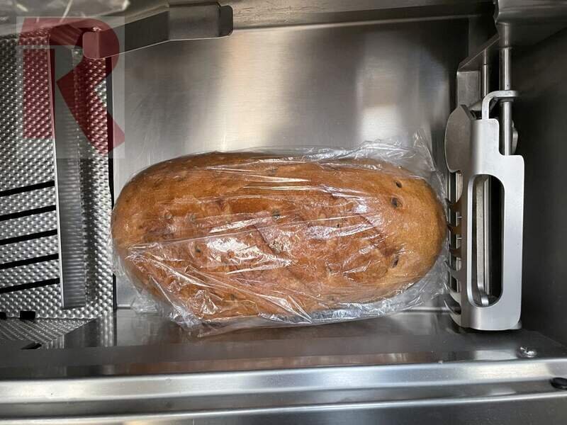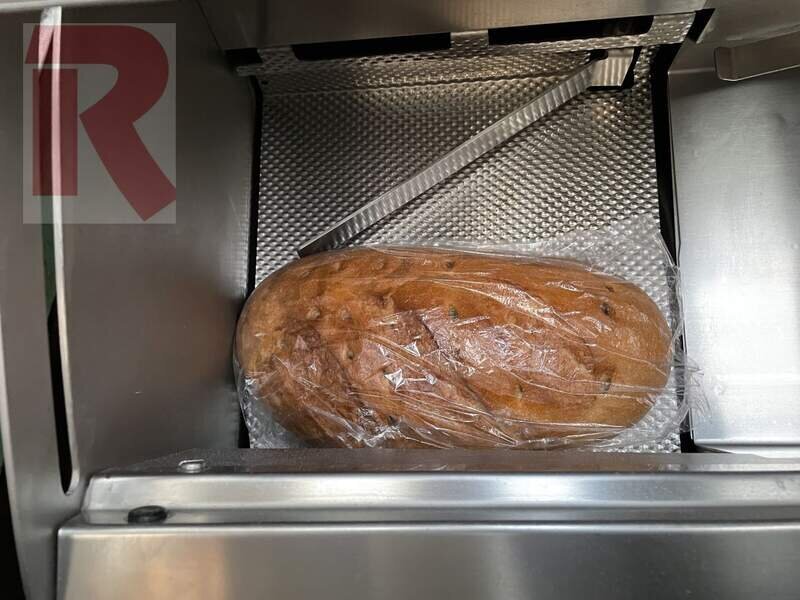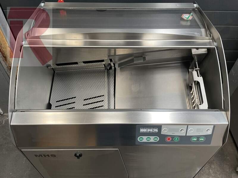 MHS Premium Circular Knife Bread Slicer, year 2014, completely made of stainless steel, 1 knife ready mounted, slice thickness adjustable from 4 to 24 mm in 0.5 mm steps, maximum dimensions of the loaves: approx. 39 x 15 x 32 cm (length x height x width) therefore also perfectly suitable for large or round loaves, with 230 V connection, i.e. no power or three-phase connection required, incl. function for exact halving of the loaves, 3 cutting thicknesses can be preset via speed dial button, tested and cleaned, fully functional.
