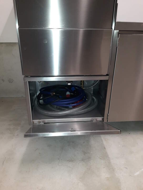 Für das Spülen von Gläsern gebaute kompakte Anlage mit einer Colged Spülmaschine 36L-23GD , im Unterbau sicher und sauber aufbewahrt befindet sich eine Winterhalter MonoMatik 3 von und eine Winterhalter Umkehrosmoseanlage AT Excellence-S
