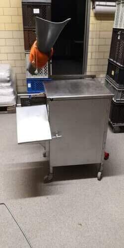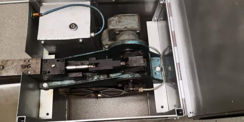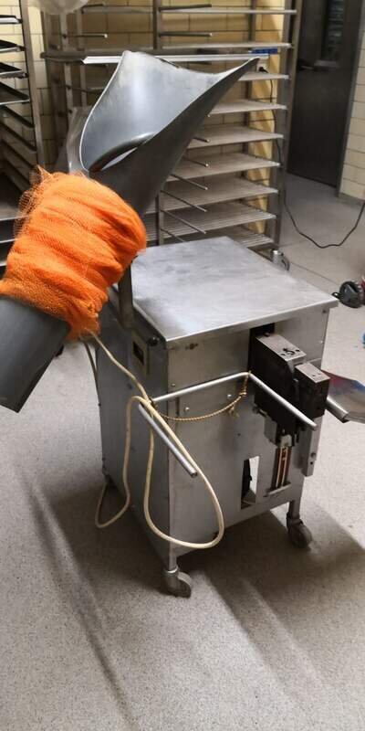 Doppelclipmaschine zum Verpacken von Kartoffeln, Zwiebel, Äpfel, Semmeln etc. geeignet. Endlosnetz wir per Kupferclip verpackt und abgeschnitten. Die Maschine war Jahrzehnte als Semmelverpackungsgerät im Einsatz. Schwere, massive Ausführung auf Rollen. Original Bedienungsanleitung und Ersatzteilliste dabei. Einfache Mechanik. 400 V Anschluss. Gewicht ca. 100 kg. Gebe etliche Verpackungsnetze und Kupferbänder kostenlos noch mit dazu.