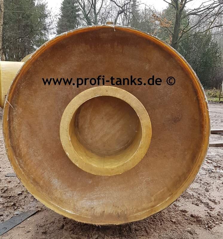 Gebrauchter ca. 11 m³ / 11.000 Liter Polyestertank / GFK-Tank, oberirdisch, stehend, auf Rock / Ring, Juno-Tank, guter Zustand.
