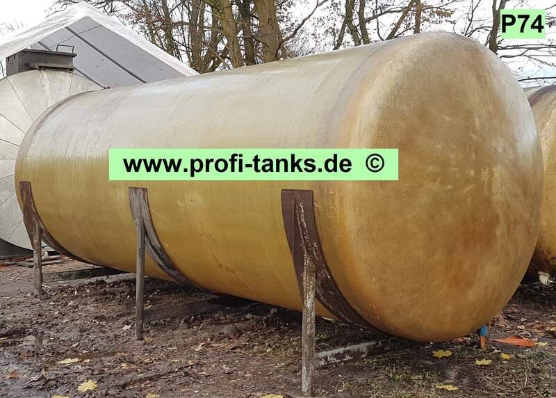P74 - gebrauchter ca. 18 m³ / 18.000 Liter Polyestertank liegend, auf drei Sockeln