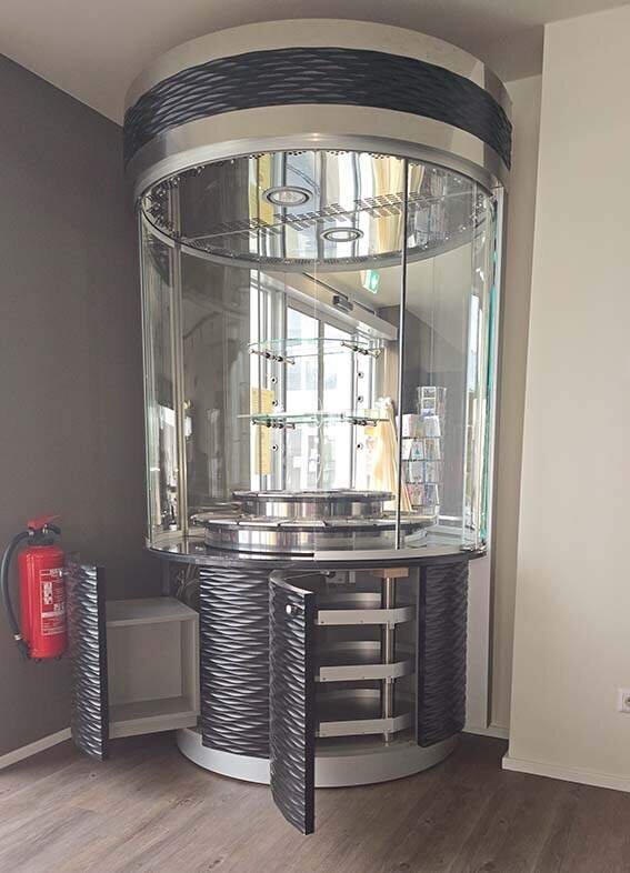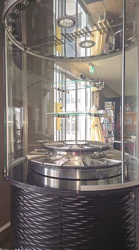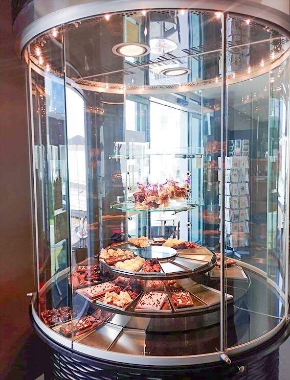 Die Panorama-Pralinenkühlvitrine gerne jederzeit nach voheriger Terminabspprache bei uns in der Filiale besichtigt werden.