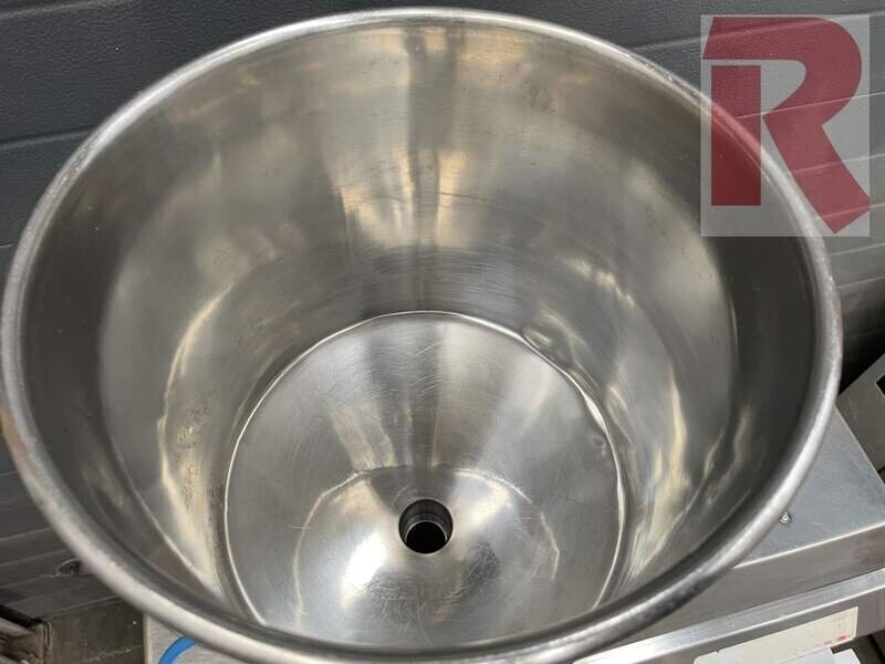 Riehle Kombi-Gebäckfüller Linie 2.000 mit 2 Trichtern für je ca. 15 Liter aus Edelstahl, 1 Deckel, sowie einem Dosierschlauch (ca. 1,5 Meter lang) mit Dosierspitze und Handbetätigung. Geprüft und gereinigt. Rationelles und schnelles Füllen sämtlicher dickflüssiger Massen und Cremes (z. B. Fruchtfüllungen, Pudding uvm.) dank einer mechanischen Kolbenpumpe, die Füllmenge kann mechanisch vorgewählt werden, Dauer- und Impulsbetrieb per Knopfdruck. 230 V Betrieb, ca. 0,5 kW Motorleistung.