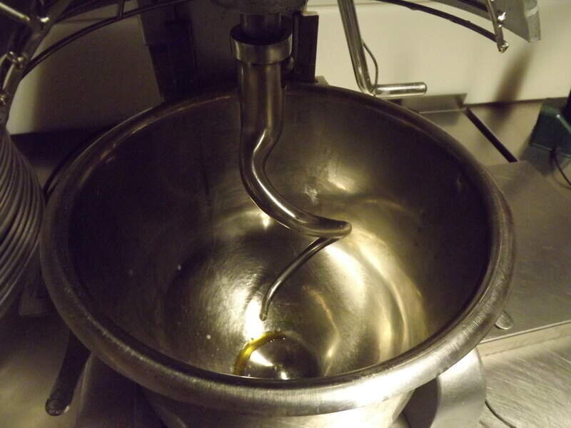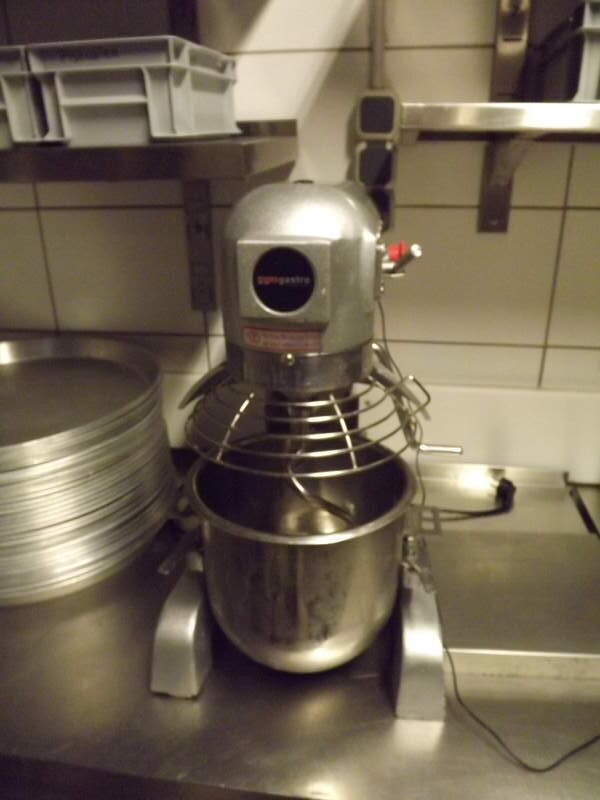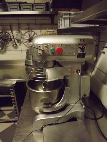 kleine Rührmaschine - Anschlagmaschine inc. 1 Knetarm für Teige, 1 grober Rührbesen, 1 feiner Rührbesen. Schüsselinhalt 5 ltr.