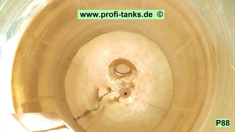 Gebrauchter ca. 35 m³ / 35.000 Liter Polyestertank, GFK-Tank, Reich-Tank, inkl. Soleerzeuger, oberirdisch, stehend auf Rock, mit Trichter, guter Zustand.