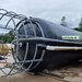 Polyestersilo ca. 45.000 L, gebrauchtes GFK-Silo mit Unterfahrgestell, komplett neu gestrichen, max. 1,4 Kn/m³, H gesamt 14,00 m, gereinigt, in gutem Zustand, inkl. Leiter und Geländer. Ehem. Salzsilo, z.B. als Futtersilo, Mehlsilo, Pelletsilo.