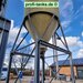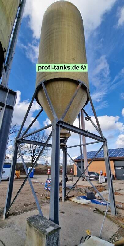 Sonstiges: Gebrauchtes Polyestersilo in gutem Zustand, ehem. Salzsilo. Stehendes Silo aus GFK, Dom oben auf dem Dach, mehrere Zu- und Ausläufe. Inkl. tragende Stahlkonstruktion / Unterfahrgestell. Von innen und außen gereinigt, Dach neu gestrichen.