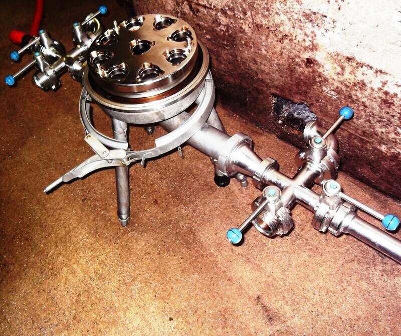Kerzenfilter für 9 Filterkerzen. Zur Filtration von Flüssigkeiten geeignet. Der Filter besitzt eine Vorrichtung, die das Rückspühlen der Filterkerzen ermöglicht und ist vollkommen aus Edelstahl hergestellt!
