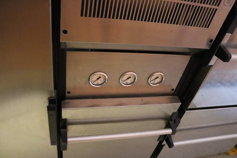 Schanktheke Hagola (6-fach) mit dazugehöriger Technik (siehe Bilder), Maße: 320 x 80 cm, hochwertiges Edelstahl – Kältetechnik Knoll, plus Thekenablage Hagola 250 x 80 cm, Neupreis: 8.500 €