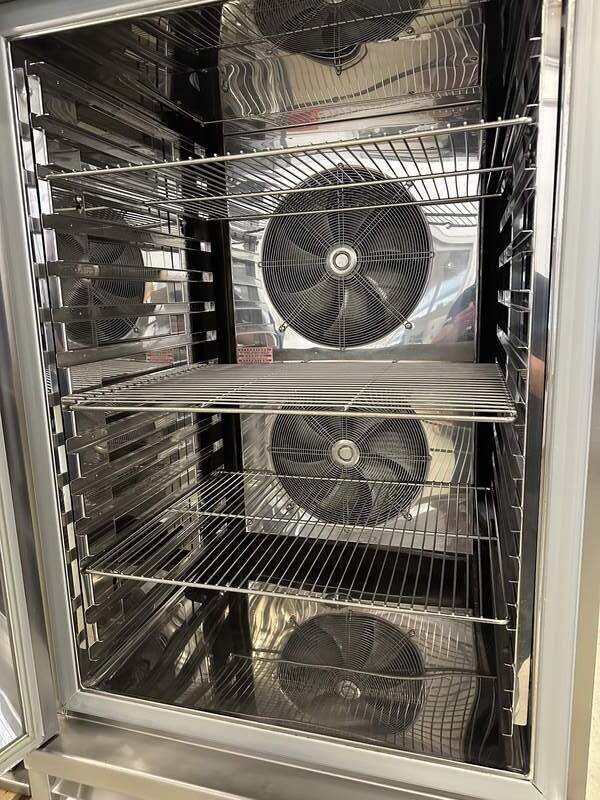 400 Volt, 5,4 kW, komplett Edelstahl, rollbar, 14 Einschübe, programmierbar, Maße B/T/H 85/105/195 cm.