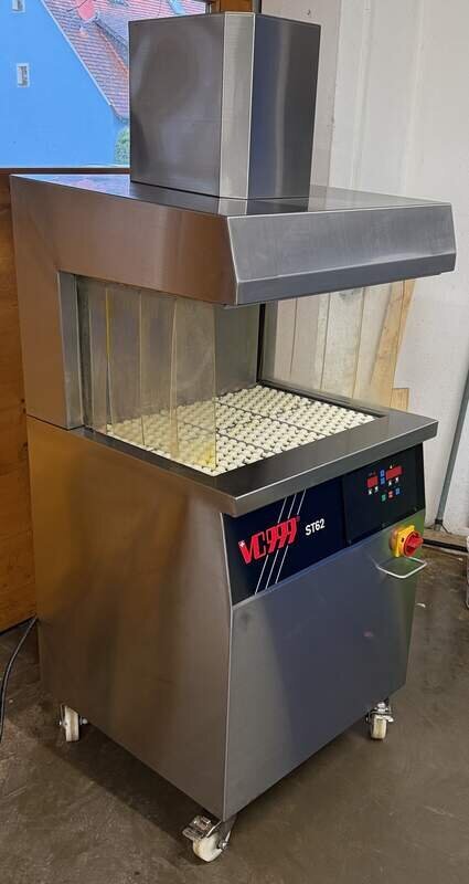 Schrumpftank VC999 ST 62, Schrumpfbecken, mit Dampfabzug, Programmsteuerung, Baujahr 2014, Anschluss 400V, 12,5 kW, Maße Becken ca. 62x40cm, Gesamtmaße LxBxH ca. 73x75x172cm, Gewicht ca. 160kg, sehr guter Gebrauchtzustand, voll funktionsfähig