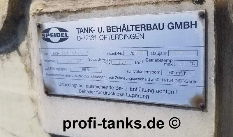 Polyestertank ca. 30.000 L gebraucht, GFK Speidel-Tank, stehend ca. 3,0 × 4,6 m. Sehr guter Zustand, inkl. Befüllleitung. Für viele Medien wie Wasser, Flüssigfutter, Molke, Melasse, Gülle, Sickersaft, Rapsöl, Regenauffangtank usw. profi-tanks
