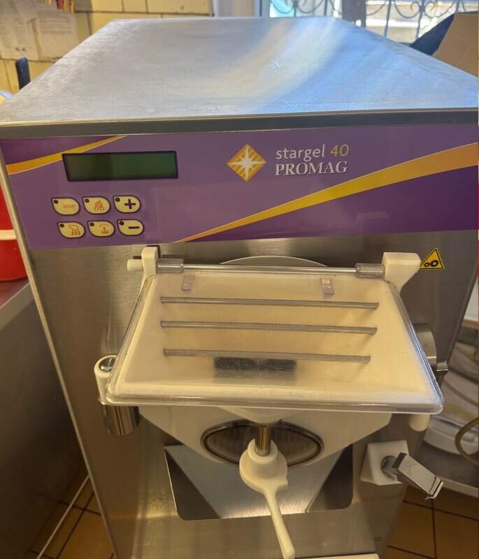 Entdecken Sie diese professionelle Stargel 40 Promag Gelato-Maschine (auch bekannt als Horizontal-Batch-Freezer) die bis zum 18.10.2025 im zuverlässigen Einsatz war.Gewicht von nur 90 kg,perfekt für effiziente,cremige Eisproduktion in Ihrer Gelateria