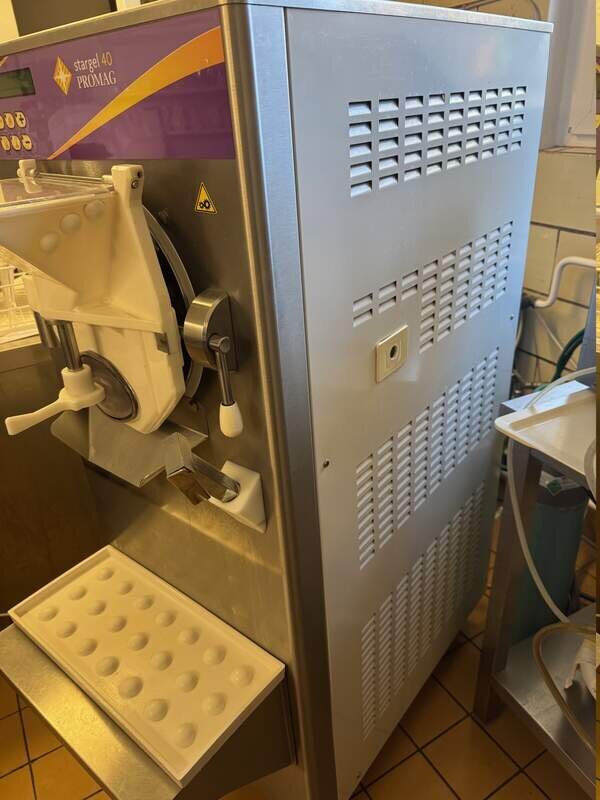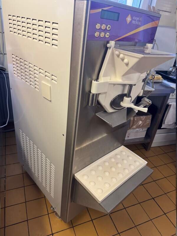 Entdecken Sie diese professionelle Stargel 40 Promag Gelato-Maschine (auch bekannt als Horizontal-Batch-Freezer) die bis zum 18.10.2025 im zuverlässigen Einsatz war.Gewicht von nur 90 kg,perfekt für effiziente,cremige Eisproduktion in Ihrer Gelateria