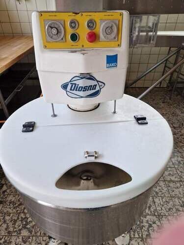 Gebrauchter Diosna Spiralkneter, Bj.1979, für 120kg Teig, mit zwei Uhren, zwei Gänge, Rückwärtslauf mit Taster. Der Spiralkneter ist im einwandfreiem Zustand, Keilriemen wurden erneuert, Zubehör: Staubschutzhaube wurde nachträglich angebaut.