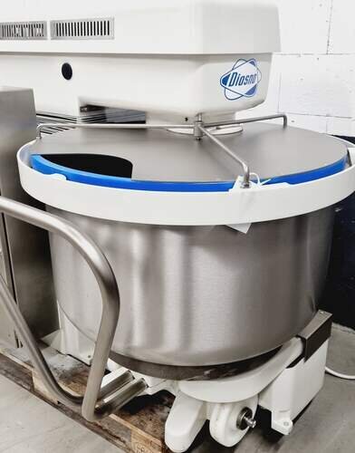 Der Spiralkneter von Diosna Modell: SP 160 AD mit 2 ausfahrbaren Kesselwagen ist für max. 160 kg Teig und mit 2 Gänge und 2 Uhren, das Heben und senken erfolgt über Steuerungs-Automatik