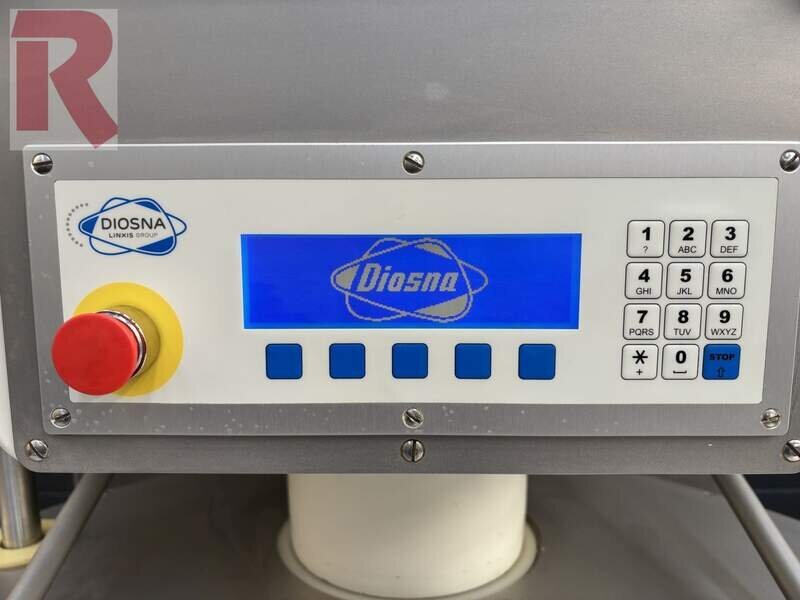 Spiralkneter Diosna SPV 160 AF mit ausfahrbaren Edelstahl-Kesseln (2 Stück) für bis zu ca. 160 kg Teig bzw. 125 kg Mehl, BJ ca. 2010, gebraucht, in sehr gutem Zustand sowohl technisch als auch optisch, geprüft und gereinigt, mit serienmäßiger hydraulischer Zangenverriegelung für den Kesselwagen sowie Bottichwandabstreifer aus Kunststoff. Die Steuerung mit Klartextanzeige und Programmspeicher wurde bereits einmal erneuert, die Maschine ist voll funktionsfähig. Perfekt geeignet auch für kleinere und mittlere Betriebe.