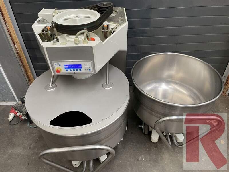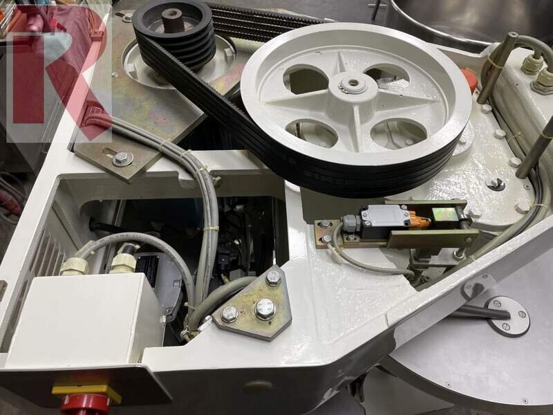 An almost identical machine without a wall scraper and with gear drive for the bowl trolleys and outlet nozzle in the bowl base (cleaning opening) is also available from stock, including 2 bowls. We would be happy to send you photos; a package sale would be conceivable.