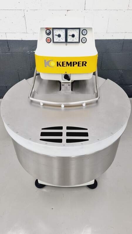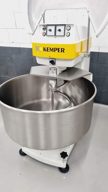 Dieser Spiralkneter von WP Kemper Modell SP 100 L ist mit Edelstahlkessel sowie 2 Gänge und 2 Uhren ausgestattet und für max.100 kg Mehl / 160 kg Teig