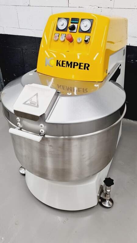 Der Spiralkneter von WP Kemper Modell: SP 120 Mobile ist mit 2 Gänge und 2 Uhren sowie Edelstahlkessel + Edelstahlspirale und ist für max.75 kg Mehl