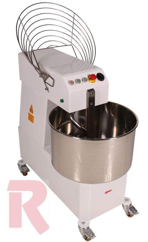 Spiral kneader SV 60 for up to 60 kg dough, demonstration model, built in 2021, hardly used, almost as good as new, approx. 40 kg flour, 2 speeds, 1 timer (machine switches off automatically after time has elapsed), bowl and kneading spiral in stainless steel, bowl diameter: approx. 57 cm, bowl height (inside) approx. 33 cm. 380/400 V, 16 A CEE plug, approx. 2 or 2.9 kW, new appliance, built in Italy, quality from Europe.