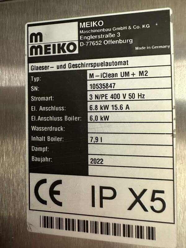 sehr gut erhaltene Meiko Geschirrspülmaschine mit Chio Wasseraufbereitung voll funktionsfähig! Baujahr 2022 im Einsatz von 2023-2024 Neupreis war 8000