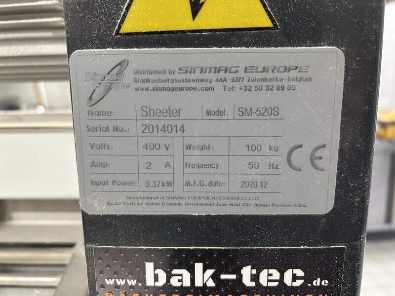 professionelle Teigausrollmaschine / Dough Sheeter SM 520S aus Baujahr 2020 – ideal für Bäckereien und Gastronomiebetriebe.