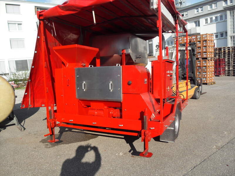 Mobile Traubenannahmestation auf einem Anhänger, der mit LKW und PKW zu ziehen ist. Abbeeren, mahlen, wiegen, pumpen, ca 5 Tonnen pro Stunde.
