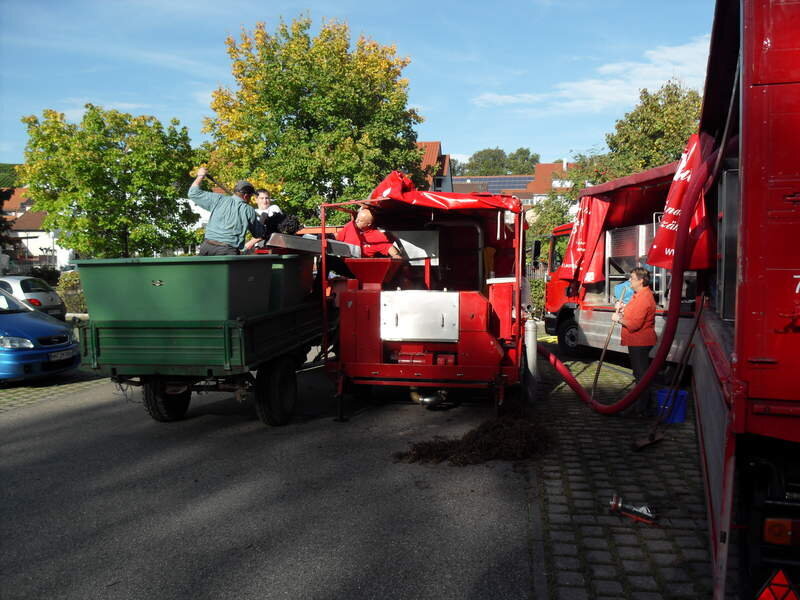 Mobile Traubenannahmestation auf einem Anhänger, der mit LKW und PKW zu ziehen ist. Abbeeren, mahlen, wiegen, pumpen, ca 5 Tonnen pro Stunde.