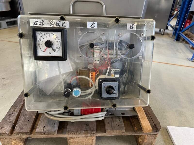 Wir verkaufen hier einen Tumbler / Mischer vom Hersteller Inject Star, Typ HS-7 in einem guten gebrauchten und funktionstüchtigen Zustand. Die Maschine läuft auf 400 Volt, 0,75 kW, komplett Edelstahl, Trommel 175 Liter, analoge Steuerung, Werkstatt geprüft, sofort einsatzbereit, noch 1 x auf Lager, Maße B/T/H 75/90/90 cm, weiteres auf Anfrage.