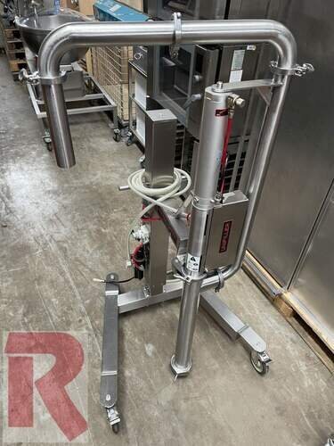 Unifiller "Hopper Topper" transfer pump HT3P, pneumatic transfer pump for masses, fillings, creams, etc. also with soft pieces up to approx. 25 mm, year of manufacture 2019 in very good condition, incl. fill level sensor for the downstream device for automatic activation of subsequent conveying.