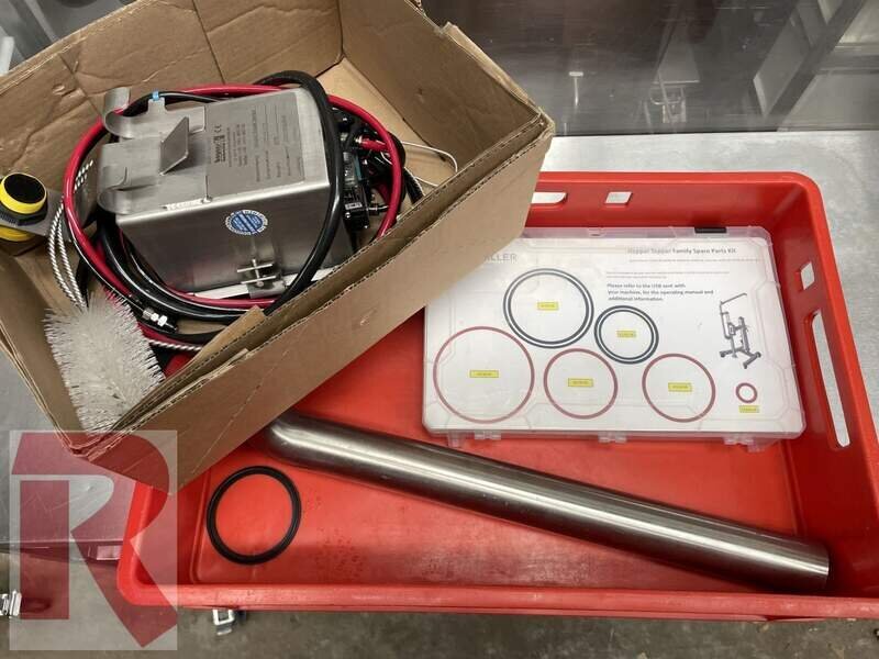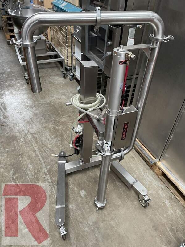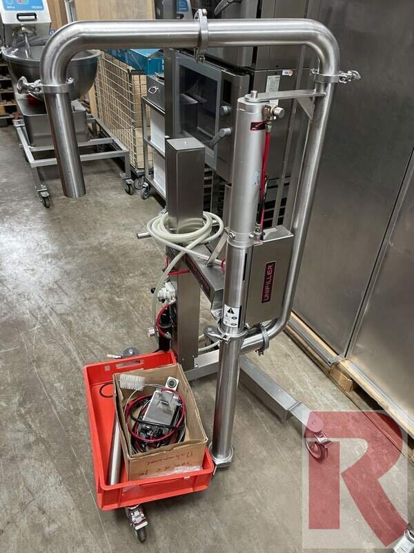 Unifiller "Hopper Topper" Transferpumpe HT3P, pneumatische Transferpumpe für Massen, Füllungen, Cremes, etc. auch mit weichen Stücken bis zu ca. 25 mm, Baujahr 2019 in sehr gutem Zustand, inkl. Füllstandssensor für das nachgelagerte Gerät zur automatischen Aktivierung der Nachförderung.