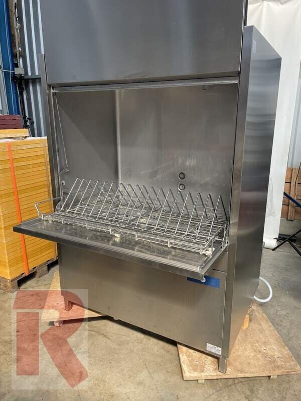 Universalspülmaschine Hobart UXT-10A für Kisten, Körbe, Bleche, Kessel und vieles mehr. Baujahr 2017, erste Inbetriebnahme in 11/2021 (!) nur 1.500 Betriebsstunden, 380 bzw. 400 V, ca. 21,6 kW, geprüft, gereinigt, voll funktionsfähig.