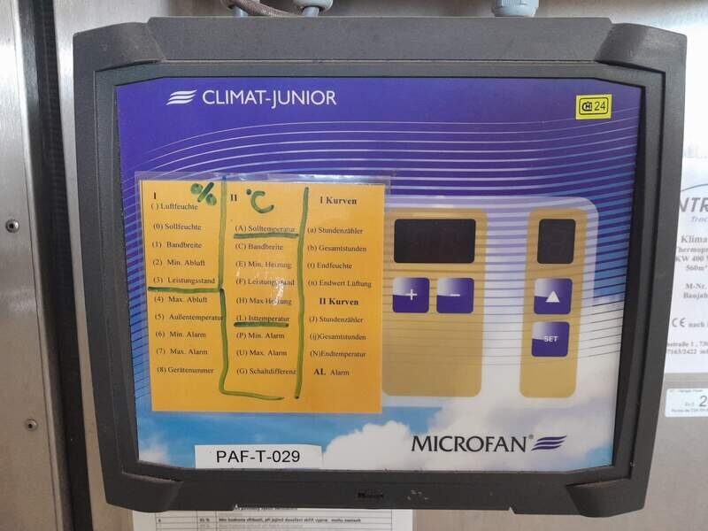 Details : Füllmenge je nach Schnittdicke und Hordenhöhe bis zu 150 Kg Trocknung bei bis zu 45°C in ca 24h