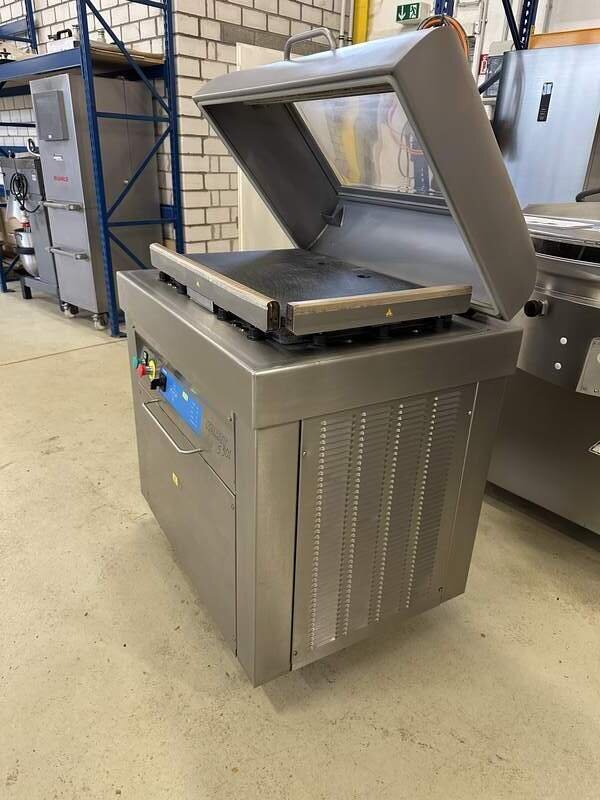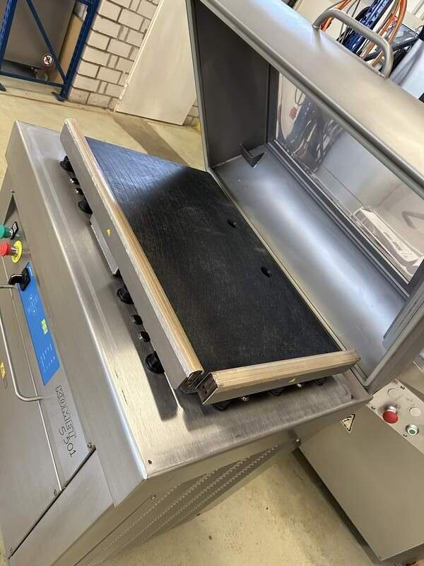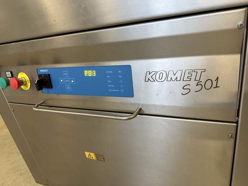 Wir verkaufen hier ein Vakuumierer vom Hersteller Komet, Typ S 501 in einem sehr guten gebrauchten und funktionstüchtigen Zustand. Das Gerät läuft auf 400 Volt, 3,5 kW, große Kammer B/T/H 80/50/23 cm, neue Steuerung, elektrische Deckelöffnung, Busch Vakuumpumpe 160 cbm/h, rollbar, Werkstatt geprüft, sofort einsatzbereit, Maße B/T/H 100/75/120 cm, weiteres auf Anfrage.
